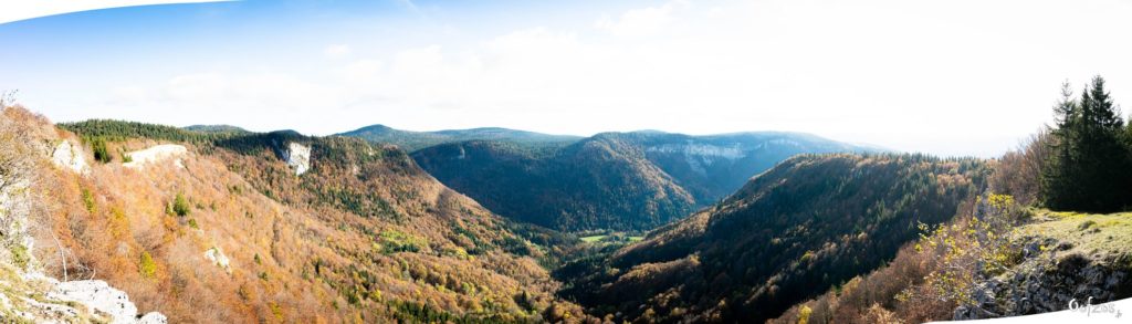 qui est aussi la limite des régions Bourgogne Franche-Comté et Auvergne Rhône-Alpes et qui fût au début du 17ième siècle la limite entre les royaumes de Franche-Comté et de France. Nous sommes dans le Parc Naturel