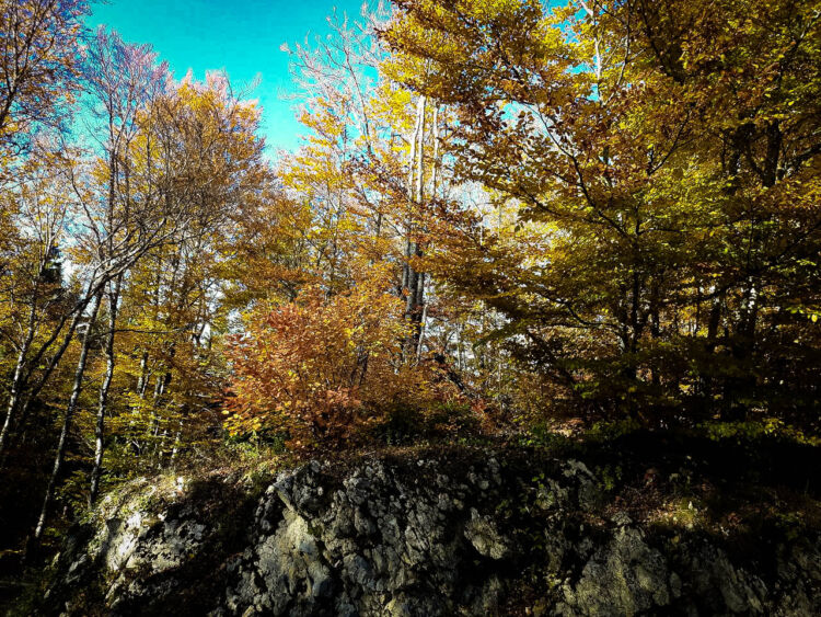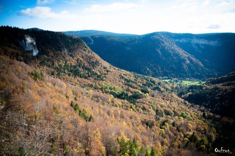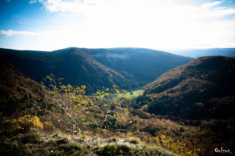 qui est aussi la limite des régions Bourgogne Franche-Comté et Auvergne Rhône-Alpes et qui fût au début du 17ième siècle la limite entre les royaumes de Franche-Comté et de France. Nous sommes dans le Parc Naturel